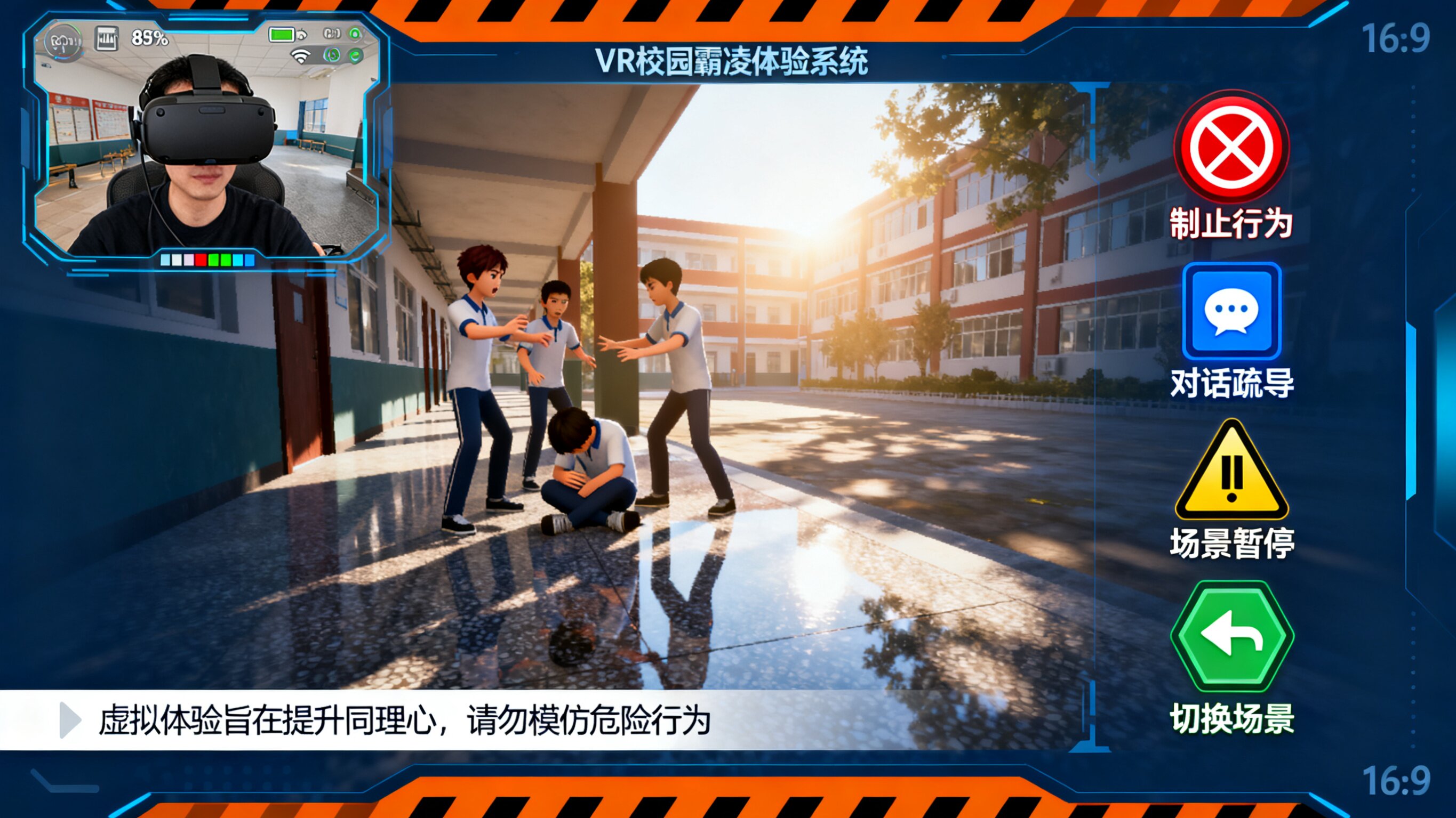 在法治教育中,传统模式常因内容抽象导致学生参与度低,VR 技术则有效打破了这一局限。一方面,其能还原法庭审判等法律场景,从审判席、法槌到旁听区细节高度复刻,视觉沉浸感让学生对法律有明确认知;另一方面,VR 可模拟酒驾、校园霸凌等法律风险场景,以防校园霸凌体验为例,涵盖肢体、语言、网络等多种霸凌类型及不同情节分支,学生通过操作选择应对方式,助力学生在实践中建立法治意识 。