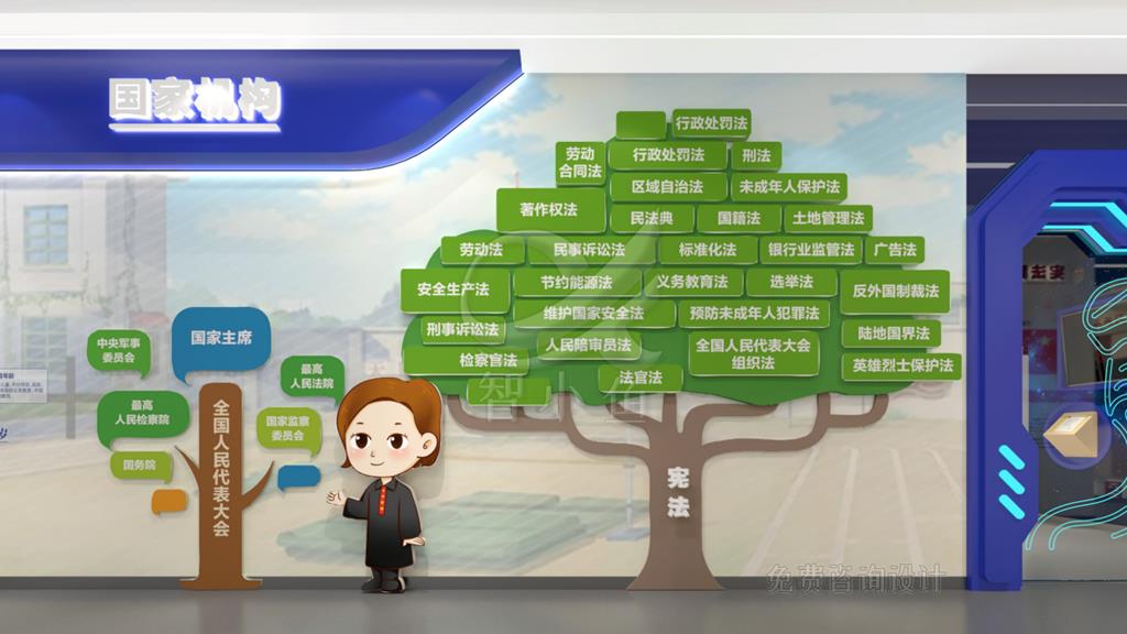 产品运用多块触控一体机,做成大树的造型,可供多人同时观看学习法律科普知识。内容可根据客户需要定制开发。
